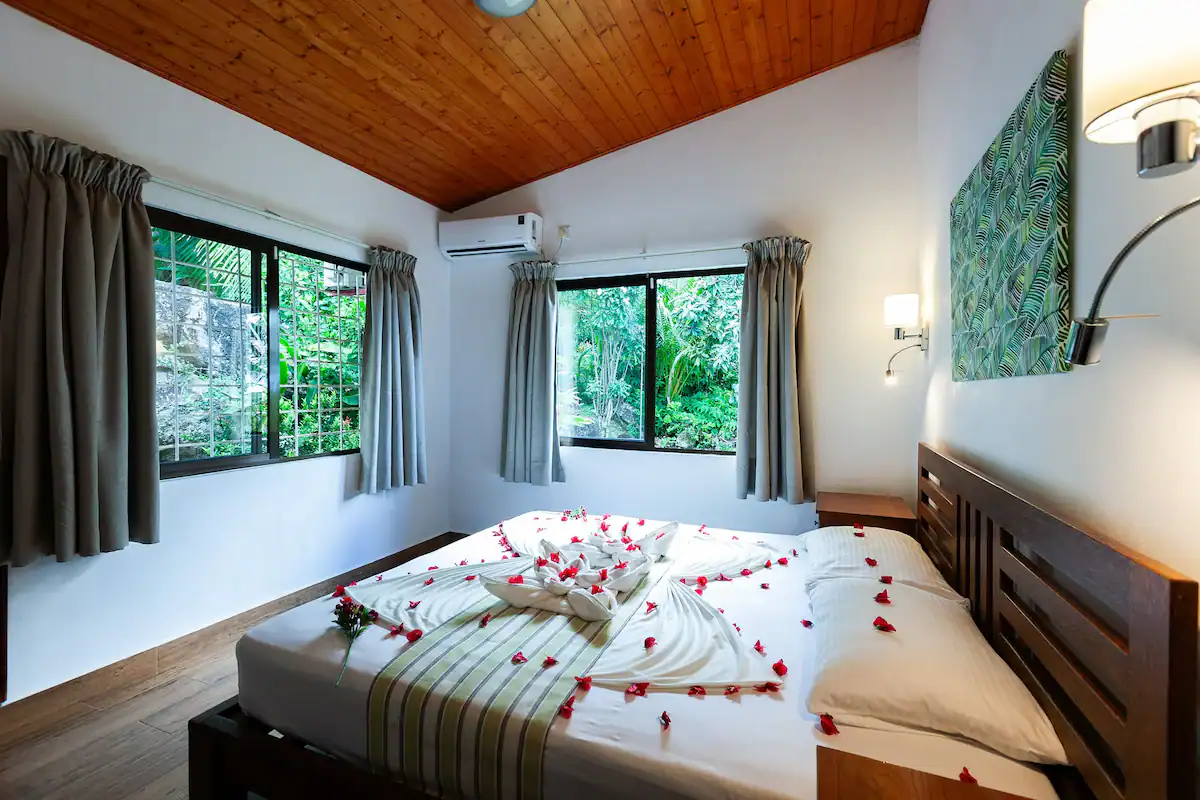 The guesthouse offers a relaxed, well-positioned base for anglers fishing Praslin’s offshore grounds. Set on a hillside overlooking Baie Sainte Anne, the property combines spacious ocean-facing rooms and villas with a quiet, functional atmosphere that suits early starts and full days on the water. Accommodation is generous in size, with balconies, air-conditioning, and optional kitchen space, making it well suited for multi-day fishing trips where comfort and practicality matter.