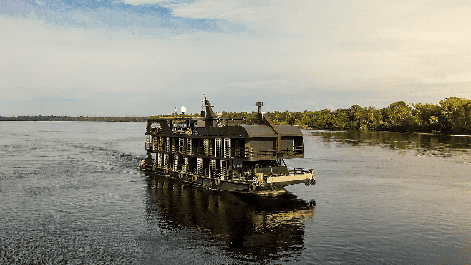 The Zaltana Mothership offers an epic Amazon fishing experience on the Rio Negro, where anglers chase trophy peacock bass in remote, untouched waters while enjoying expert guides, gourmet meals, and the comfort of a luxury floating lodge.